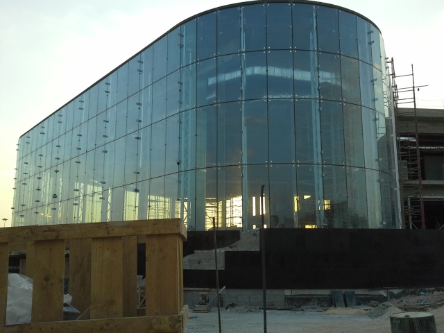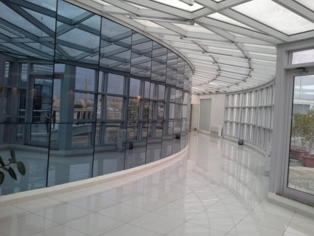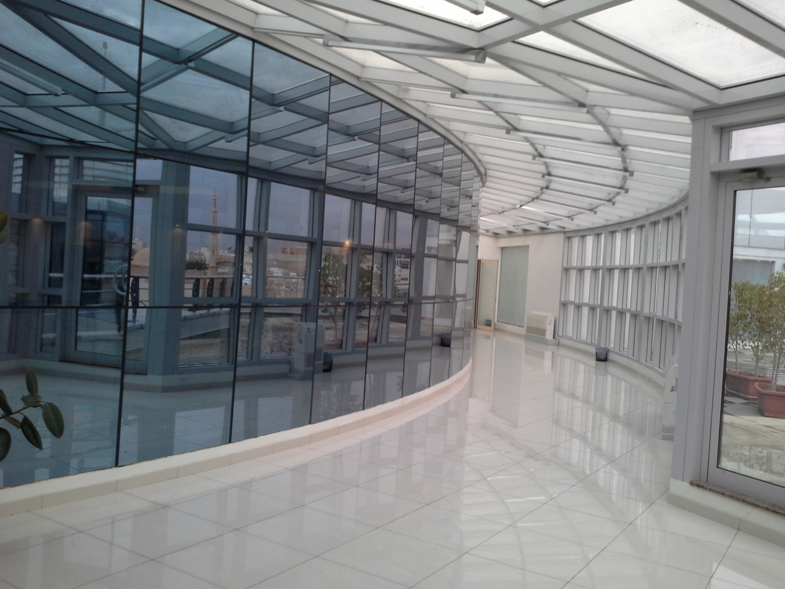 Frameless glass with stainless steel spider system single and double glass supported by glass fins or stainless steel trusses or stainless steel tension rods use mostly for show rooms and banks